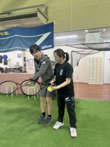 ラケットの握り・打ち方・ボールの当たる場所など1つ1つ丁寧にコーチが伝えていたので安心した様子でした!