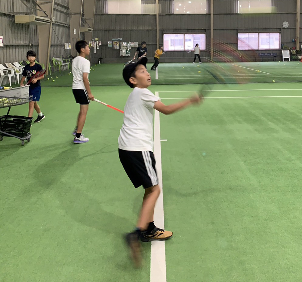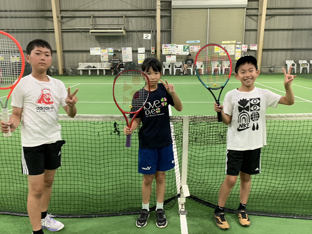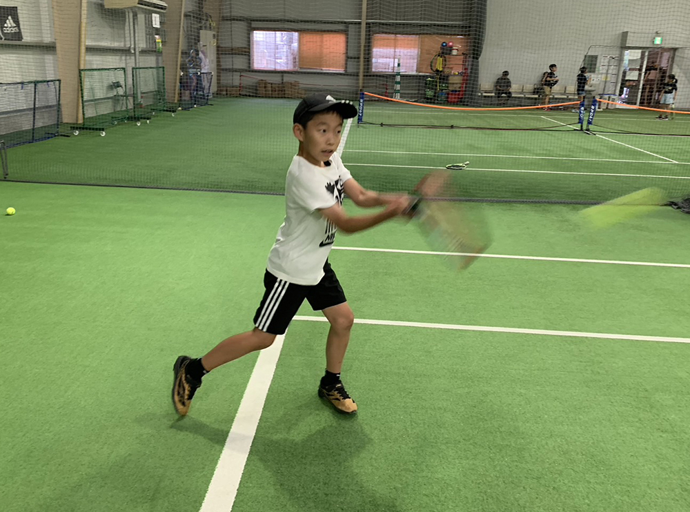上手にスイングできていました。 最後はサーブからの試合も行いました。