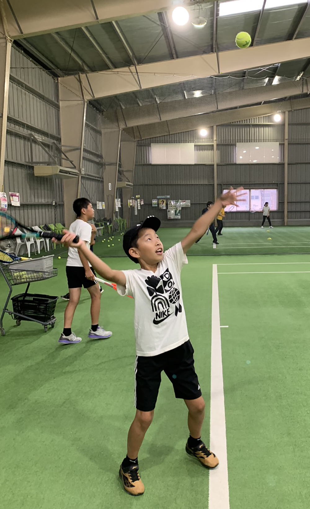 本日はサーブにチャレンジ!ボールを投げる位置やラケットの振り方を確認後みんなでチャレンジ!