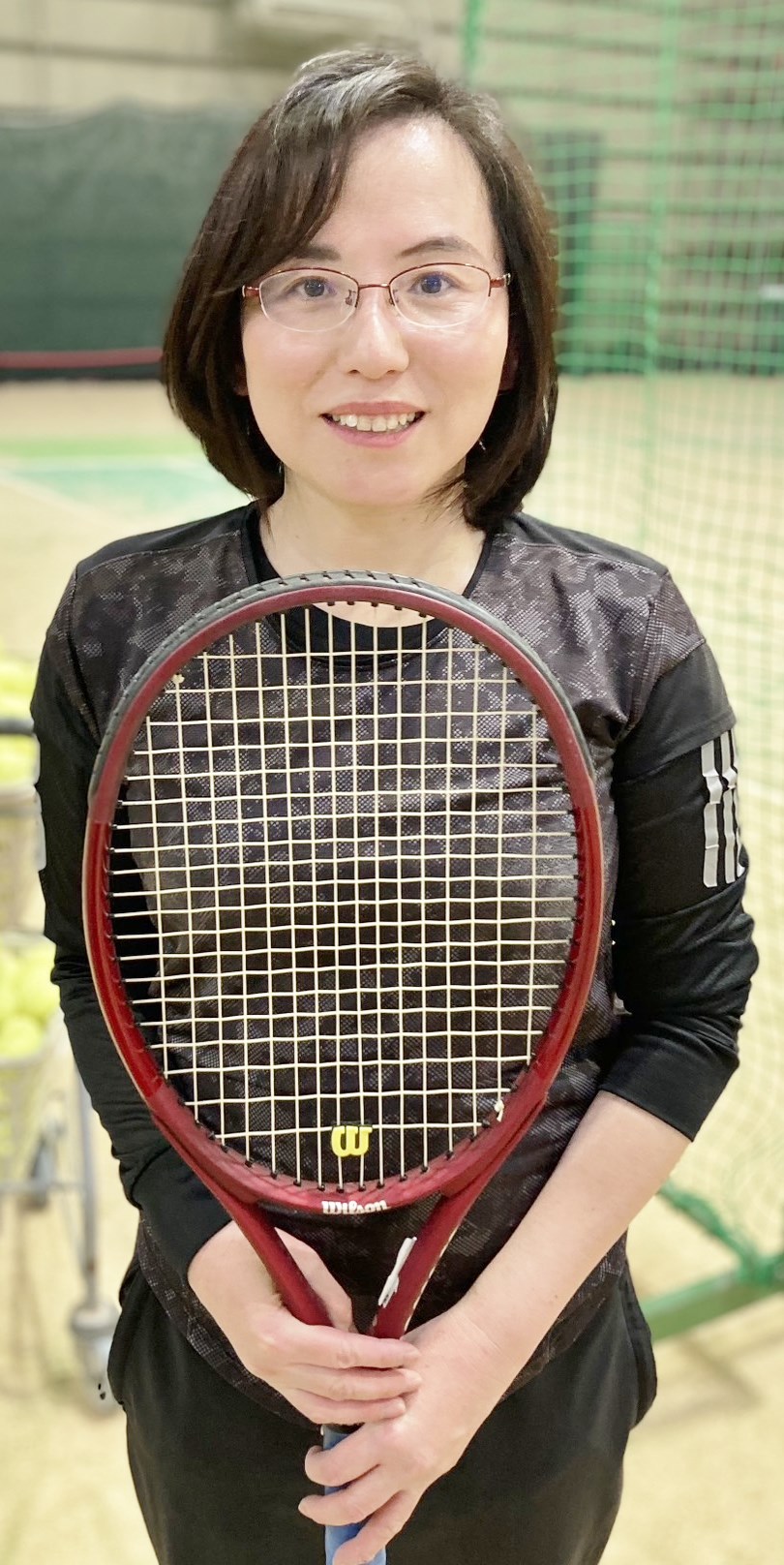 「週二回テニスに来ています!男性の力強いボールも返球できるようになってきました!運動不足解消とレベルアップ目指して、テニス頑張ります!」F様