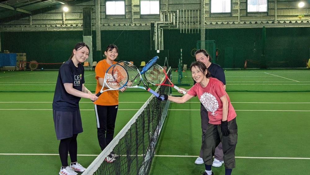 最後はネット越しで、ラケットタッチで挨拶をして、今回のレッスンはおしまいです(^^)b