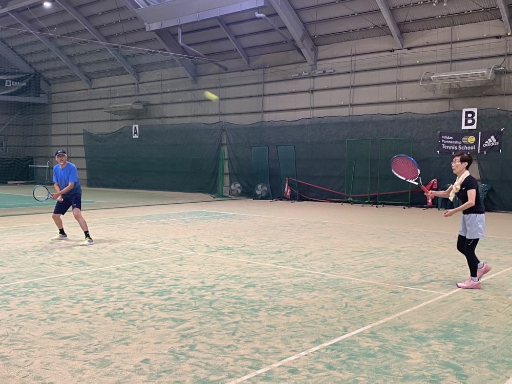『プレー中は、気持ちいい汗をかいて、休憩中は楽しいおしゃべりができて、とても良いリフレッシュになりました♪』とKさん(写真左前)からコメントいただきました(^^)v