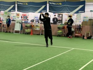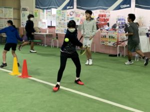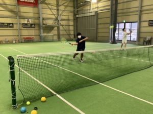 コーチのボールを打ち返すのが精一杯で一生懸命動いてました。
