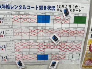 本日は年末年始レンタルコートの様子をアップしました。