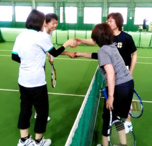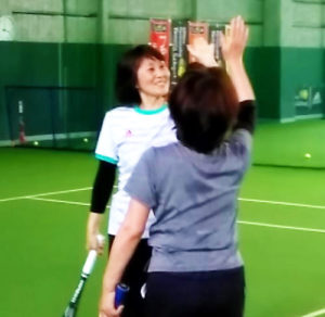 レッスン最後の試合の時間でも、皆さんトライしてボレーでポイントを取り笑顔でハイタッチをされていました!(^^)!
