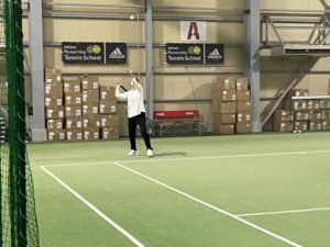 コート1面を使用し、2名ずつ休憩を入れながら進行。