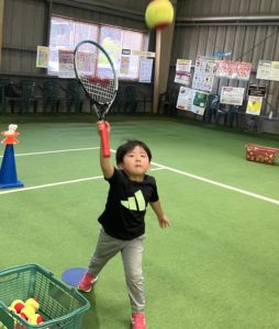 「今日はサーブ練習しました。自分でボールを上げてノーバウンドで打つことができました!