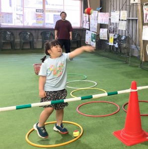 小さな子供たちは集中力が長く持たないので、ボールを投げたり、打ってみたりと色々な