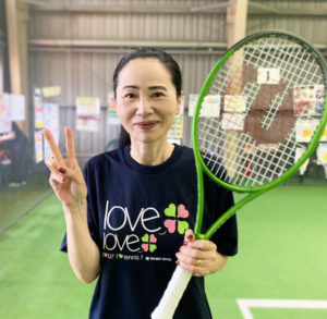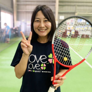 テニスを始めて体が軽くなった気がします。最近ではラリーも繋がるようになってさらにテニスが楽しくなってきました!初級クラス目標に頑張ります。