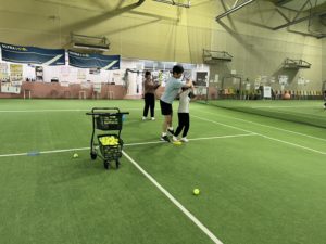 まずはボール遊びや、ラケットを使ったボール突きからスタート。