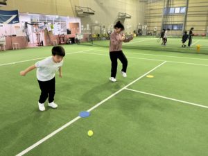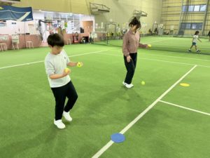 まずはボール遊びや、ラケットを使ったボール突きからスタート。