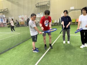ラケットの持ち方、スイングの流れをお手本を交えて丁寧に指導