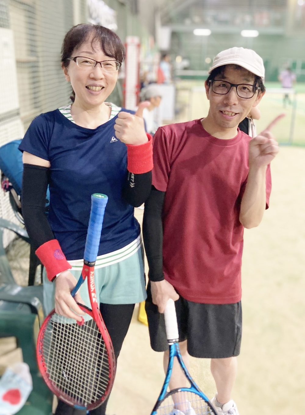 「毎週楽しくテニスしています!クラスの皆さんとも仲良く良い雰囲気です。これからもテニス頑張ります!(^^)」Uさん(左)
