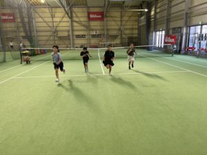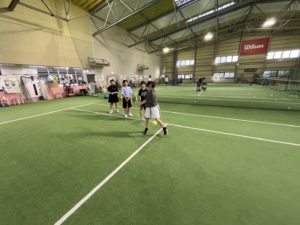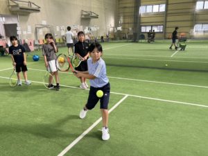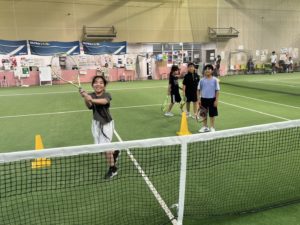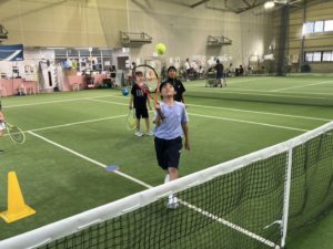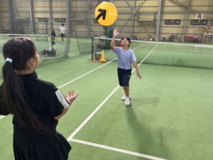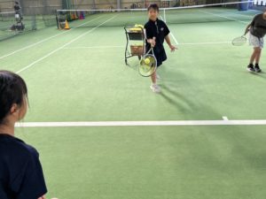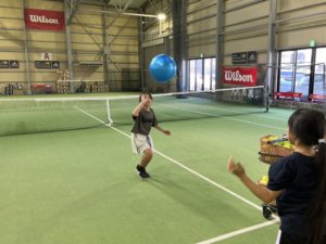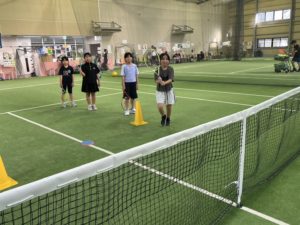 ストロークの復習で体を温めたあとは、本日のテーマ「ボレー」に挑戦しました。