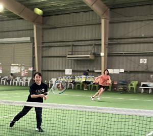 今日は、ダブルスをするの中で前衛がボレーで決めたり、つないだりしていく練習でした。