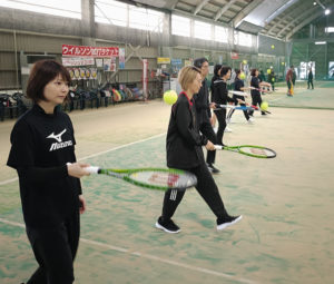この秋からテニスをスタートされた方が多数いらっしゃり、まずはボールに慣れる練習からスタート。