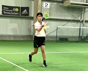 このクラスは小学生から中学生のクラスで、大人と同じコート、ボールを使って打つ経験クラスです。