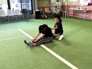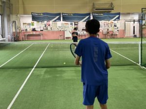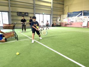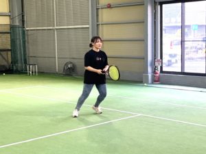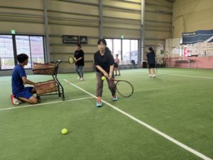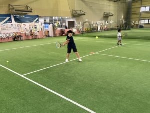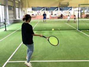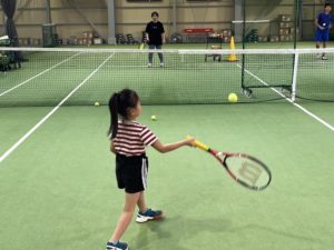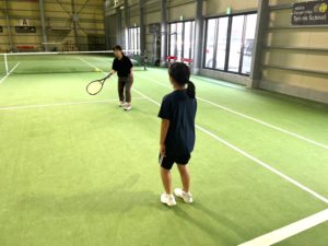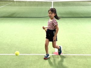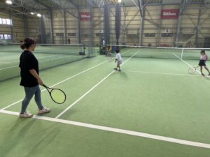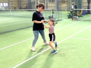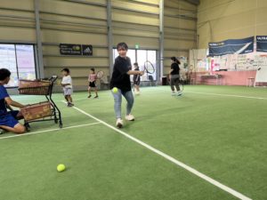 いつもは外から見学されているお母さまも、今回はコートに参加!テニス経験者ということもあり、しっかりしたフォームでボールを打ち、コーチとのラリーも見事に続いていました!