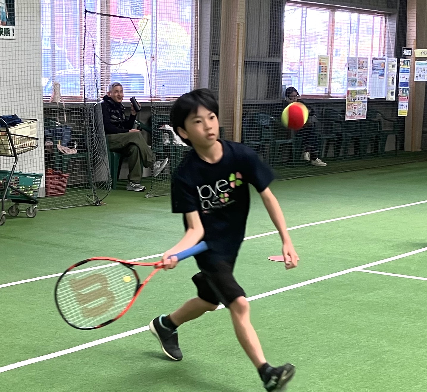 今週は全身使ってストロークを打つための距離調整として、「ボールの後ろに軸足で追いつく!」を