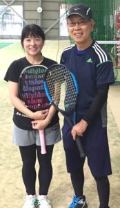「体を動かす時間が少なくなってきたので、テニスの時間は何があってもはずせません。みなさんと、ワイワイ言いながら汗をかけるので、楽しんでます^ ^ !」、、、と豊福さん(写真右)