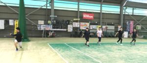 テニスを始めてまだ4カ月、、の4名様、最初はいつものミニミニラリーで